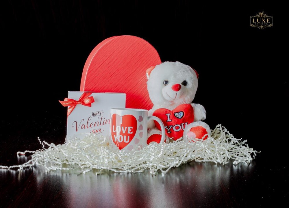 Ignite the romance with this Valentine’s Keepsake Set, a classic expression of affection designed to melt hearts. This charming collection features a velvety “I Love You” teddy bear for cuddles, a matching signature mug for cozy mornings, and a beautifully bowed gift box ready for their favorite treats. Perfectly staged against a passionate red heart, it’s a sweet, timeless gesture that turns an ordinary day into an unforgettable celebration of love.