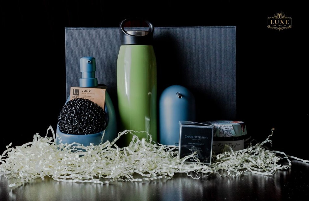 Featuring a sleek reusable water bottle for hydration on the go, a premium fragrance spray for a refreshing touch, and carefully selected personal care treats, this hamper is perfect for anyone who appreciates practical luxury. The calming tones and contemporary aesthetic make it an ideal gift for birthdays, corporate appreciation, wellness moments, or simply treating yourself.